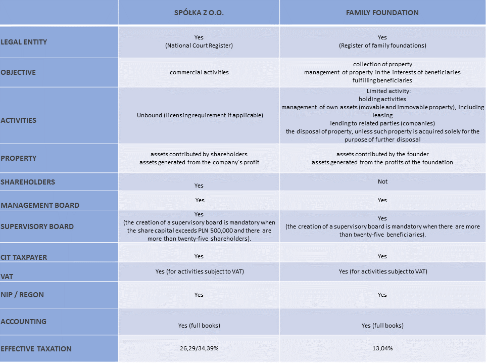 - Preparation of a calculation of the effective tax rate of a business structure with a Polish family foundation